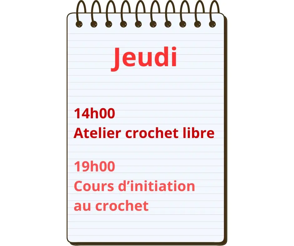 Nous y organisons également des cours et ateliers crochet : apprenez les points de base et les grannys... vous pourrez ensuite mettre à profit le tout pour confectionner sacs, couvertures, vêtements, chapeaux, paniers, etc