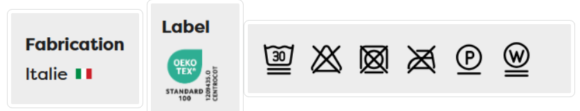 Certifié OEKO-TEX® STANDARD 100 classe I (certificat n° 1209435.O, CENTROCOT), un label reconnu internationalement qui garantit la limitation de substances nocives. La classe I est la plus élevée et signifie qu'il convient même pour des bébés.